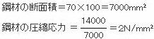 7cm×10cmの長方形断面の鋼材に14kNの圧縮荷重が作用する時の圧縮応力の求め方。
